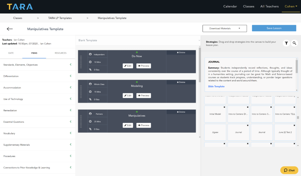 TARA is a “digital workspace for K-12 schools” that streamlines the lesson planning and coaching process. Individual teachers can use TARA’s flexible platform to build out each lesson. Administrators, in turn, can easily collect data, provide feedback, and report on important observations.