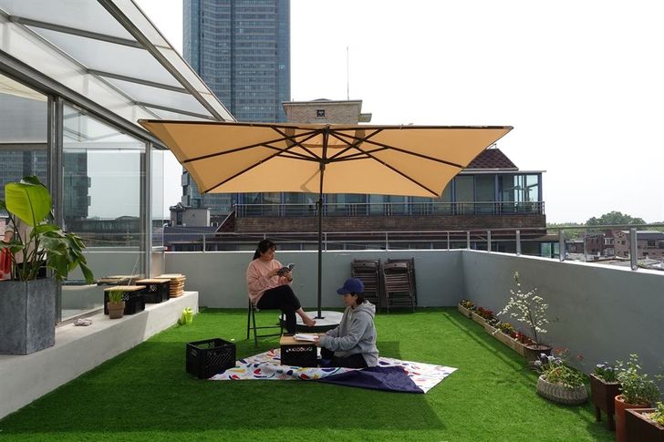 The rooftop area of the building offers a space for people to spend their time in relaxation. / Courtesy of meet me