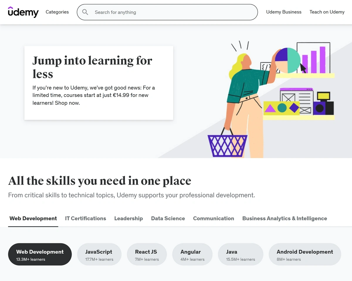 Udemy’s homepage.