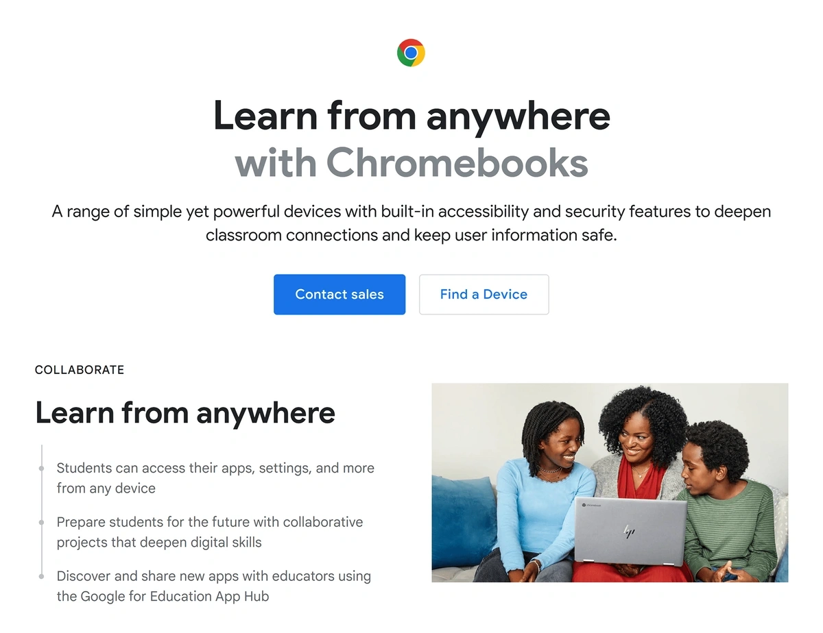 Google for Education markets Chromebooks specifically to schools.