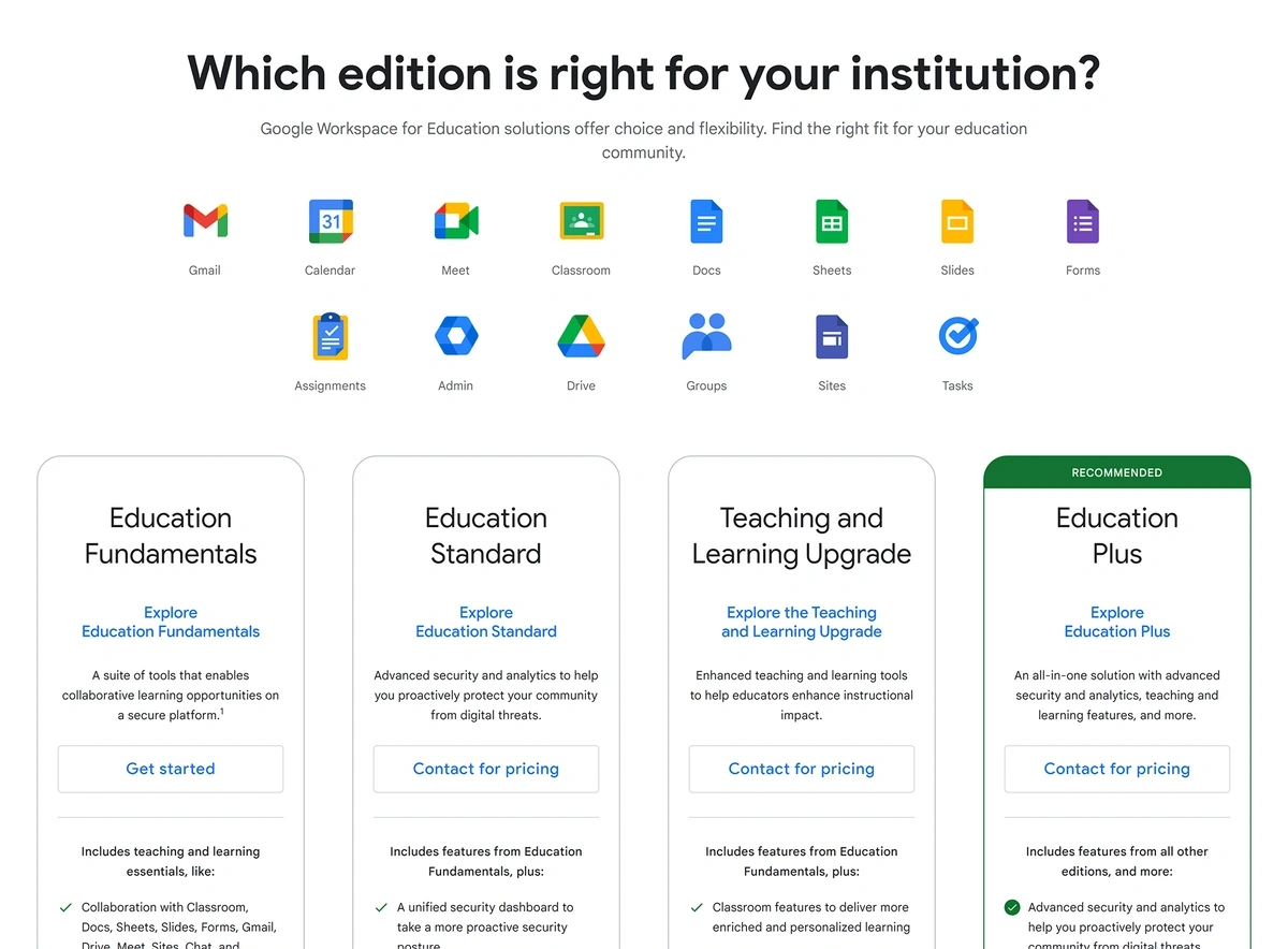 Also included in Google Workspace for Education are Google Classroom and Google Assignments.