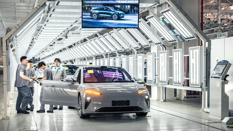 Rather than a fixed assembly line, off of which it’s difficult to pull a single vehicle in need of rework, the cars move through Nio’s 1.6-million-square-foot final-assembly area on their own AGVs, allowing any car to peel off for extra inspections or rework, or, for example, when attempting to test-run preproduction models down the line.