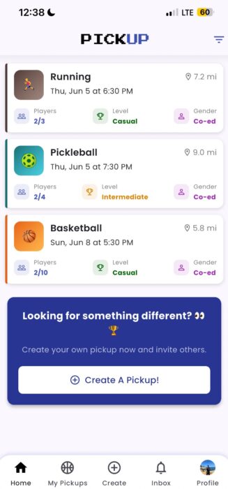 Users must be 18 or older to use Pickup and Uddin said the Pickup team is looking to target 18- to 45-year-olds. He added that much of the app’s marketing is directed at basketball and pickleball players, since basketball remains a pickup game staple and pickleball continues to explode in popularity.