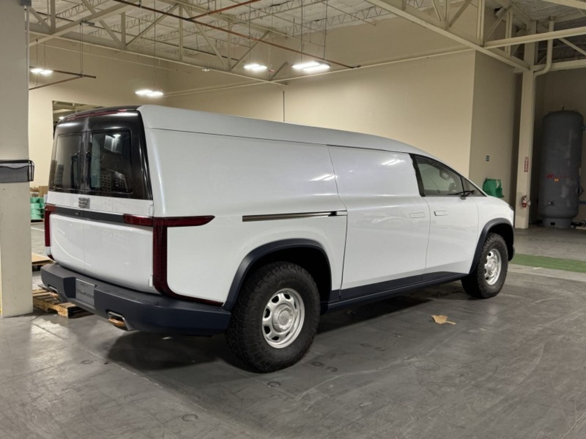 The vehicle in question is listed as “PROTOTYPE; EDISON TRUCK” on BidSpotter. It’s being sold off by The Hamilton Group LLC as part of an auction that is liquidating equipment and inventory from a defunct solar production facility in Sacramento, California. Alongside old forklifts and unsold solar panels stands a relatively clean prototype of the EdisonFuture EF1-V.