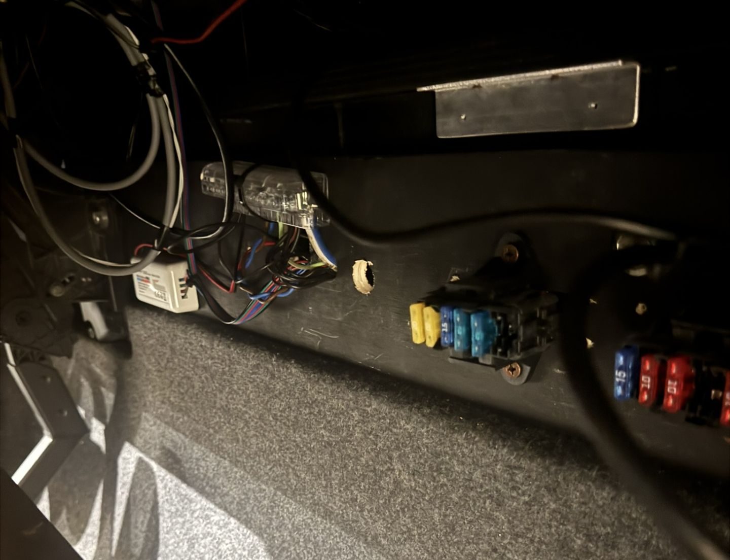 The wiring and fuse setup is pretty rudimentary and appears to be installed on a wooden panel. Credit: Bidspotter