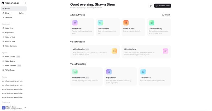 Memories.ai wants to tackle that problem with its AI platform that can process up to 10 million hours of video. For companies with a lot of video to analyze, the startup wants to provide a contextual layer, complete with searchable indexing, tagging, segments, and aggregation.