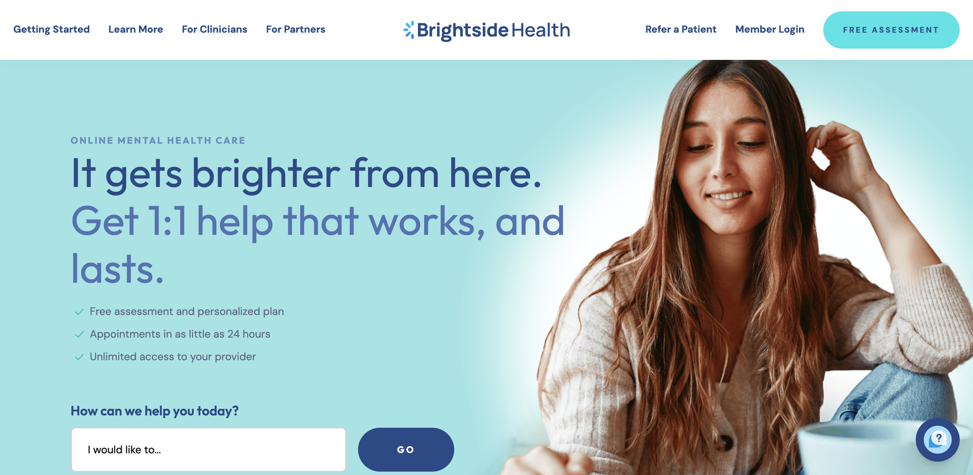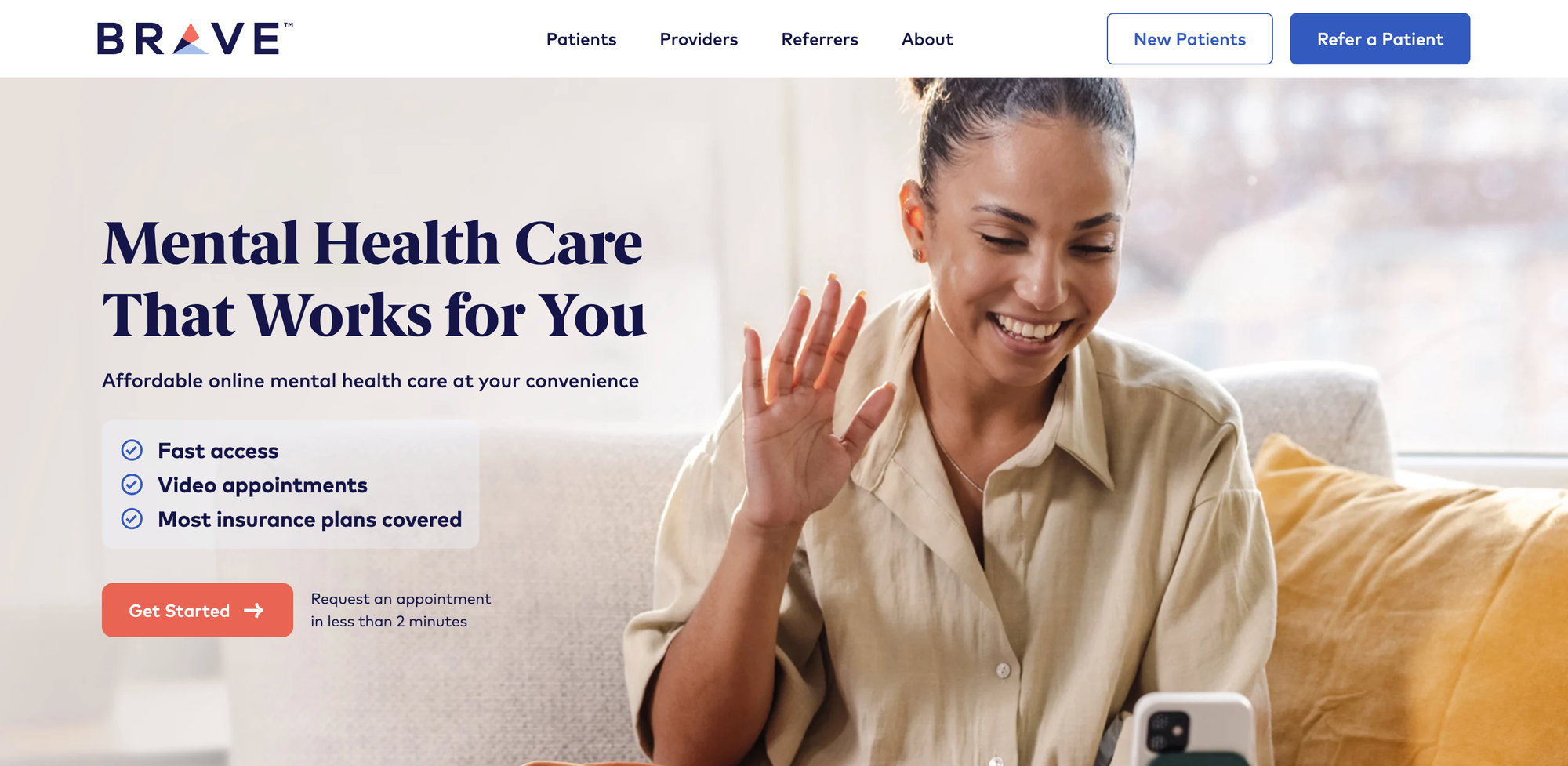 - Key Data Point: Delivers care via secure video sessions and reports significant symptom improvement, with 2 out of 3 patients with depression seeing symptoms improve after one month of treatment.