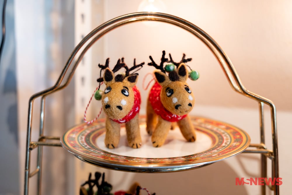 He showed off their creations, which included glass jars filled with charming wool toys, all expertly felted by hand.