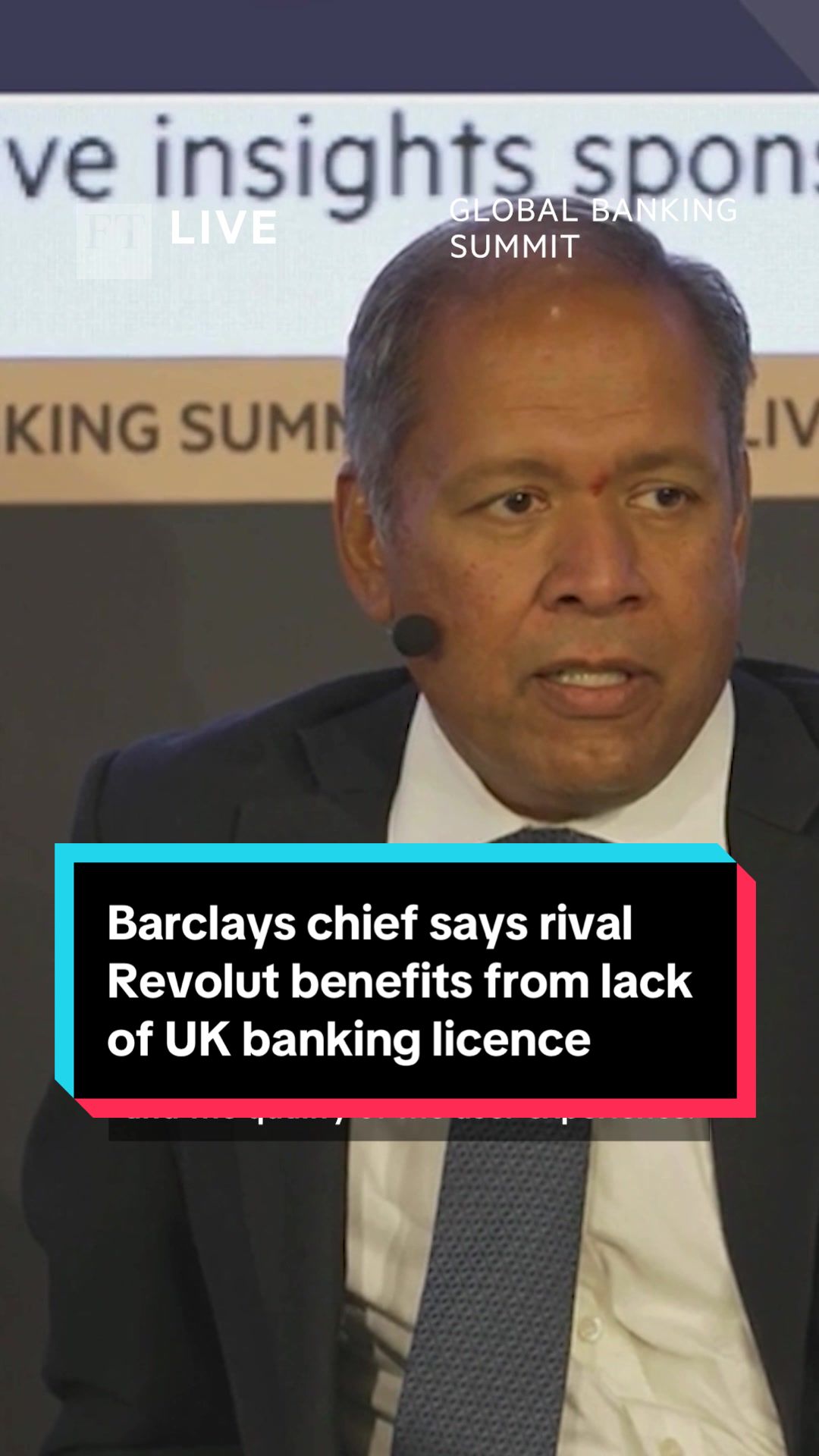 Barclays’ chief executive has suggested that its fintech rival Revolut has benefited from a lack of a full UK banking licence, with the digital start-up not required to meet some ‘very important consumer obligations’ imposed on traditional lenders. ‘There is another side of it, which is that they don’t have a full banking licence in the UK, so they are free from some of the very important consumer obligations that we have to fulfil to society,’ CS Venkatakrishnan told the FT Global Banking Summit on Tuesday. Tap the link in our bio to read more about his comments with @financialtimeslive. #Barclays #Revoult #Fintech #UK #Banking