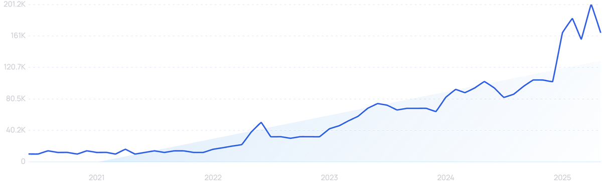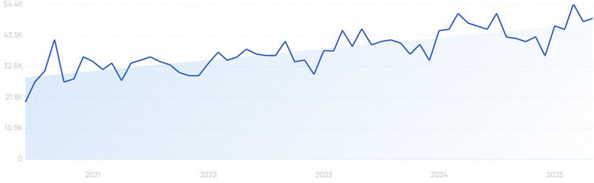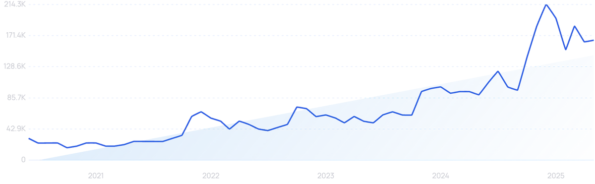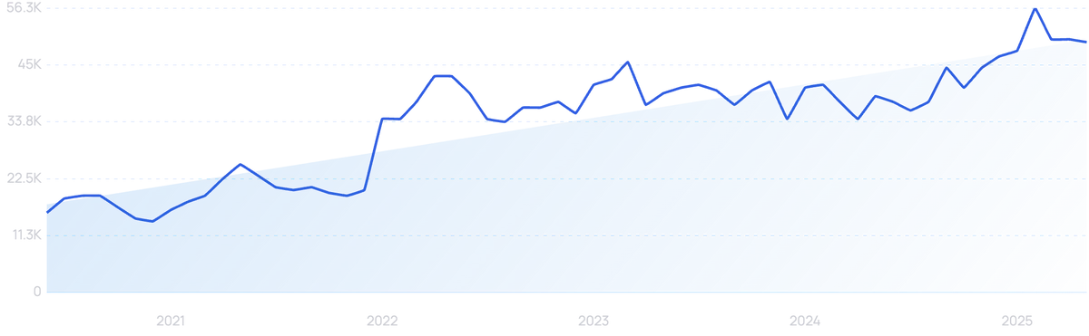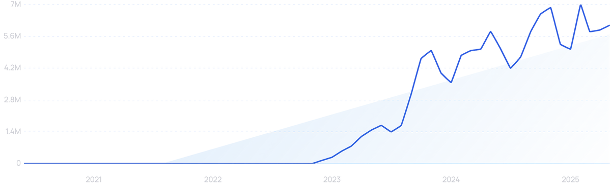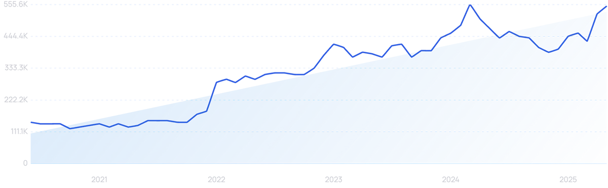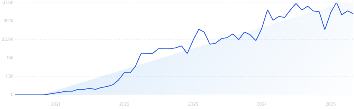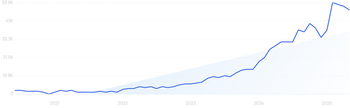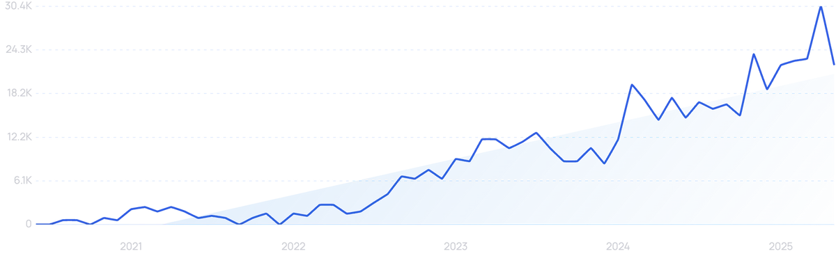 Our data is gathered from Exploding Topics Pro and Semrush.