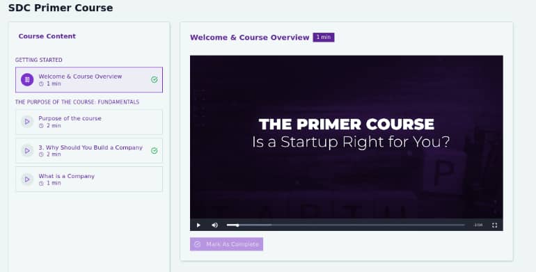 SDC Startup School is a fully online, open-access startup education platform designed to help founders move from idea to startup with clarity, structure, and discipline. The school is self-paced, allowing learners to start at any time, from anywhere in the world, and complete the program at their own pace. Rather than offering motivational content or fragmented lessons, SDC Startup School delivers a cohesive, execution-focused curriculum built around how startups are actually formed and grown. Learners engage with practical case studies, assessments, templates, and tools that guide them through problem validation, customer discovery, business model design, revenue generation, and early execution.