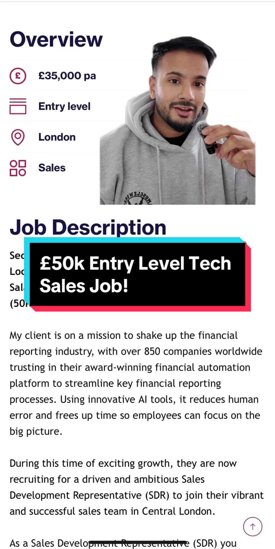 Here’s another tech sales job paying upto £50k. No experience is needed, this role is aimed for entry level! #techtok #techsales #careeradvice #tech #fyp #entrylevel #techjobs #fintech #fintok