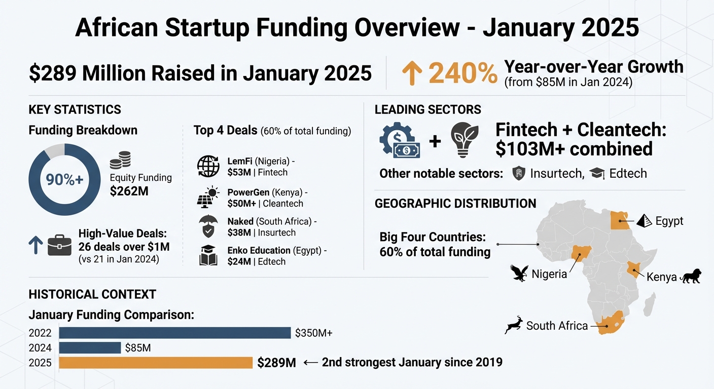 African Startup Funding January 2025: $289M Raised, 240% YoY Growth