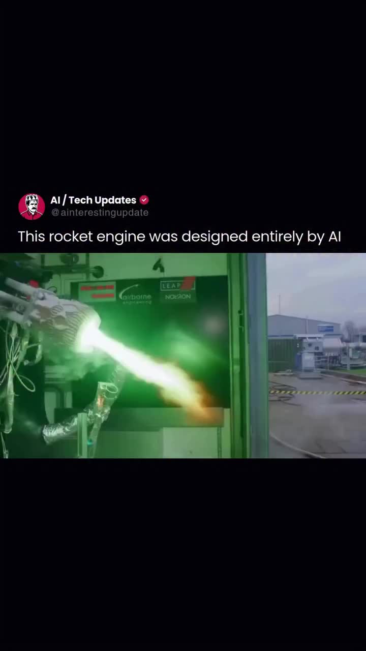 This rocket engine wasn’t designed by humans, but entirely by AI. It was created using Noyron, a physics-based engineering AI developed by LEAP 71. Instead of copying past designs, it applies real physics, thermodynamics, and manufacturing rules to generate engines directly from requirements. The aerospike engine was 3D-printed as a single copper piece and hot-fire tested with liquid oxygen and kerosene. While the interior burns at extreme temperatures, the exterior stays cold enough to form frost during operation. Each test improves the next design. • Follow @ainterestingupdate for more content on AI and technology. • 🎥: @integza #artificialintelligence #engineering #rockets #aerospike #technology