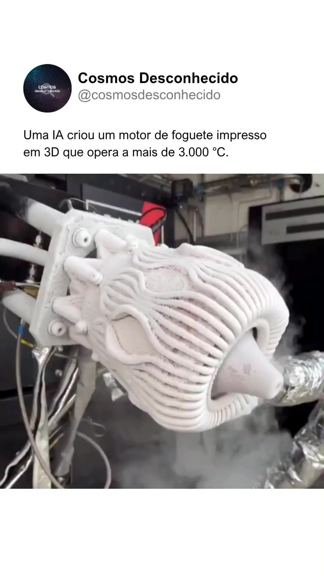 @cosmosdesconhecido O motor apresentado é o LEAP 71 NEURON 20K, um motor de foguete do tipo aerospike. Em vez de projetos manuais em CAD, um sistema de inteligência artificial integra termodinâmica, dinâmica dos fluidos, física da combustão e limites de materiais para gerar automaticamente toda a geometria do motor. O resultado é uma única peça de cobre impressa em 3D, com canais internos de resfriamento impossíveis de fabricar por métodos tradicionais. Enquanto a câmara ultrapassa 3.000 °C, oxigênio líquido a –183 °C circula pelas paredes, criando um contraste extremo onde até gelo se forma do lado de fora durante a operação. ➡️ Segue o perfil para mais conteúdos. #viral #viralvideo #fyp #fy #tecnologia
