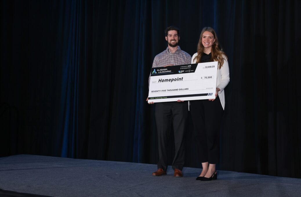 The team wrapped up 2025 with a big win at Alabama Launchpad, a program of the Economic Development Partnership of Alabama (EDPA) in partnership with Innovate Alabama. Through the program, Homepoint received $75,000 in non-dilutive funding, which allowed Caroline to jump into the business full time.