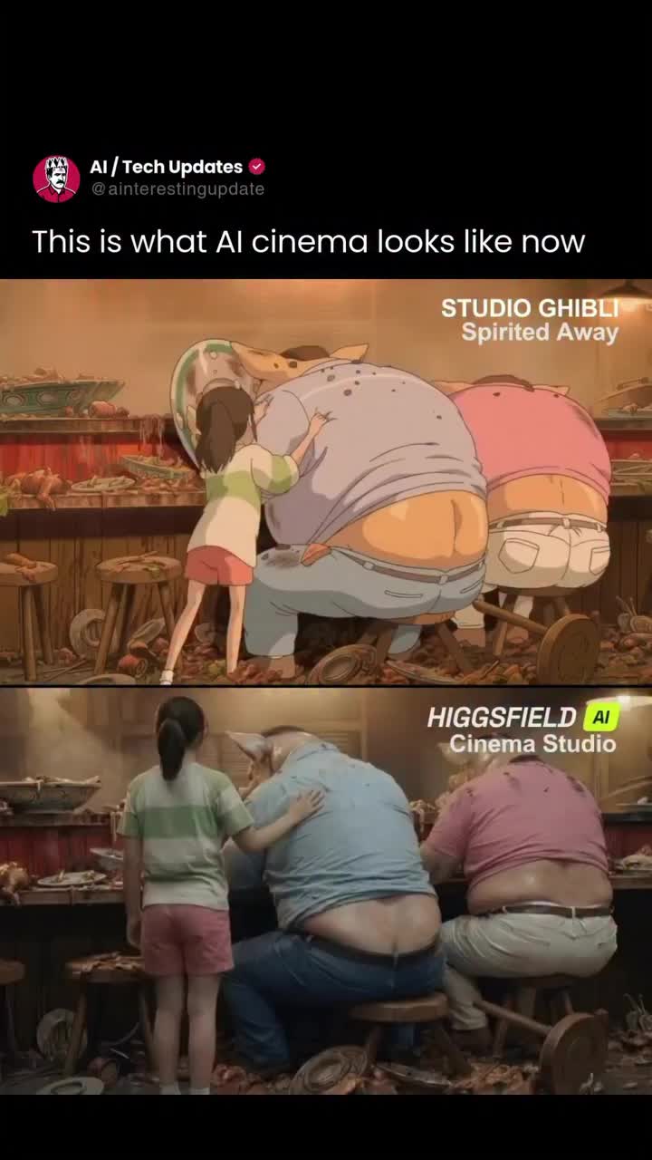 @ainterestingupdate AI live action film just got real 🎬 Higgsfield Cinema Studio just reimagined “Spirited Away” as a live-action scene using AI. No actors, no sets, just one animated frame turned into a full photoreal moment. How long before studios start doing this for real? @higgsfield.ai