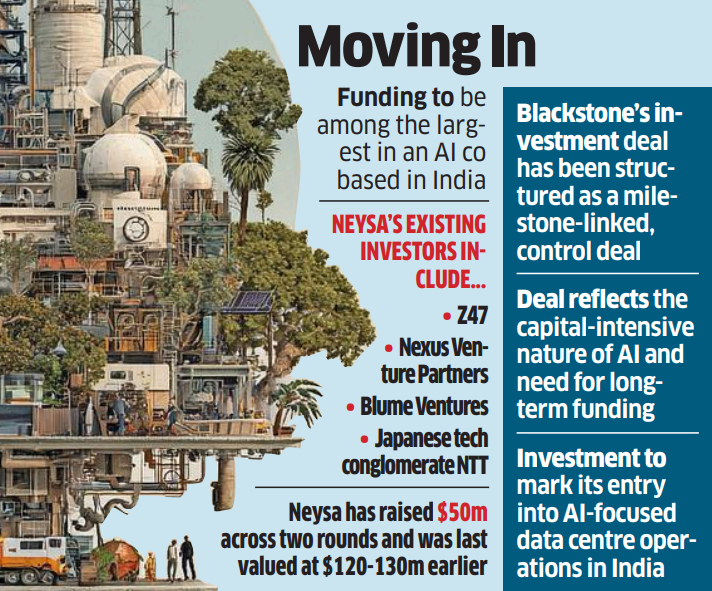 - The agreement includes milestone-linked follow-on funding, which will trigger Blackstone taking a controlling position in Neysa.