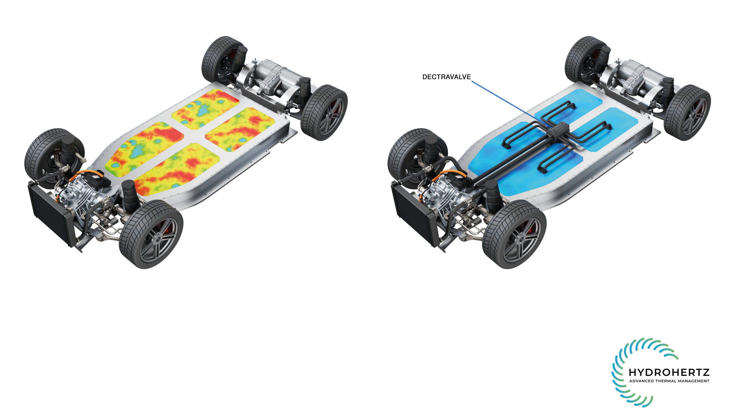 Hydrohertz says today’s EVs see their battery cells reach 56C, with a peak difference of 12C across the pack. With a Dectravalve, the EV could focus its cooling efforts on only the hottest parts of the battery, keeping the charge rate higher for longer.