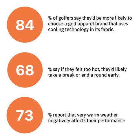 Perhaps most telling for sporting goods brands: 84 percent of golfers say they would be more likely to choose a golf apparel brand that uses cooling technology over one that does not.