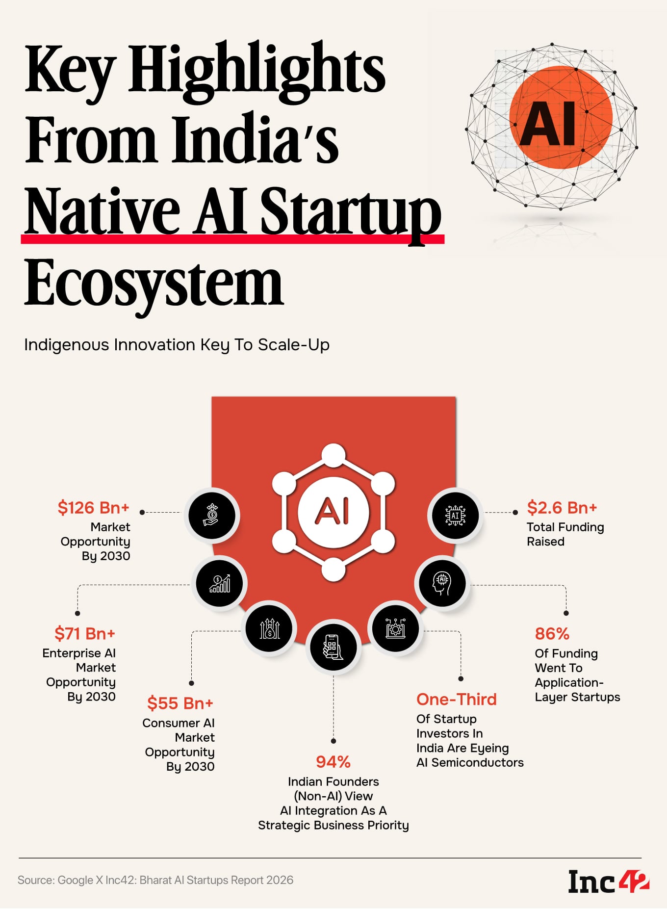 According to Google and Inc42’s Bharat AI Startups Report 2026, India’s AI market could become a $126 Bn opportunity by 2030, with a potential GDP impact of $1.7 Tn by 2035. Enterprise AI is expected to lead this growth, while consumer AI will scale rapidly on the back of strong adoption.