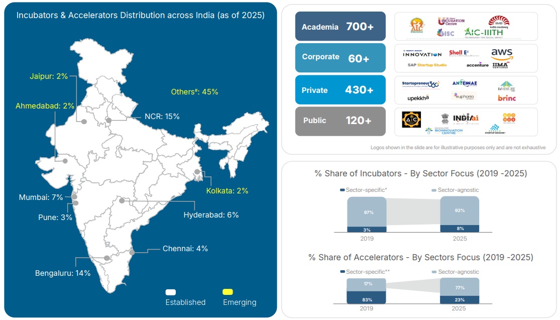 1,300+ Incubators & Accelerators across India, the deepest start-up support infrastructure in any emerging market