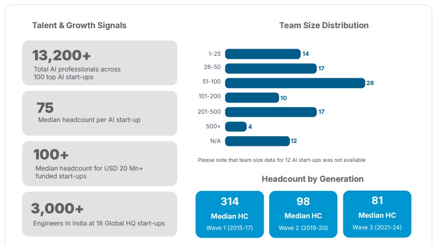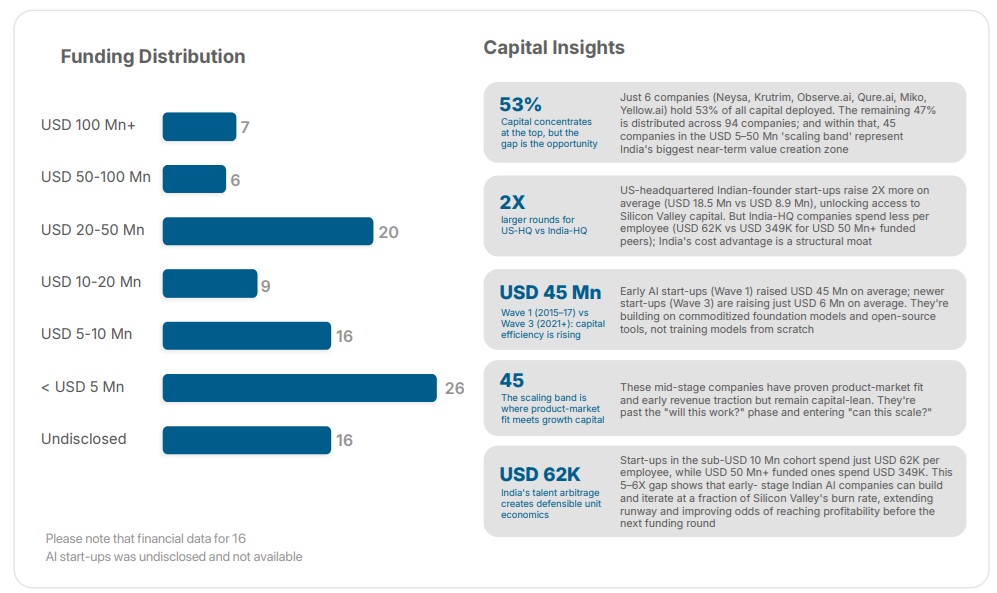 Within India’s 100 top AI start-ups, 45 in the USD 5–50 Mn band are the core scaling cohort