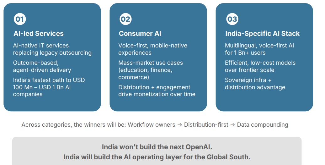 According to Aakrit Vaish Founder, Activate, At Activate, we believe Indiaʼs AI moment is being shaped by a new generation of deeply technical founders building from first principles. Through our inception investing approach, partnering with founders even before a company exists, weʼre seeing early signals across three powerful themes: Consumer AI reimagining everyday experiences, AI-led services redefining how work gets done, and Sovereign AI building Indiaʼs own foundational capabilities. Indiaʼs edge lies in its unique constraints and scale, and the most enduring companies will be those that combine world-class technology with deep local insight. We are still in the earliest innings of this transformation.
