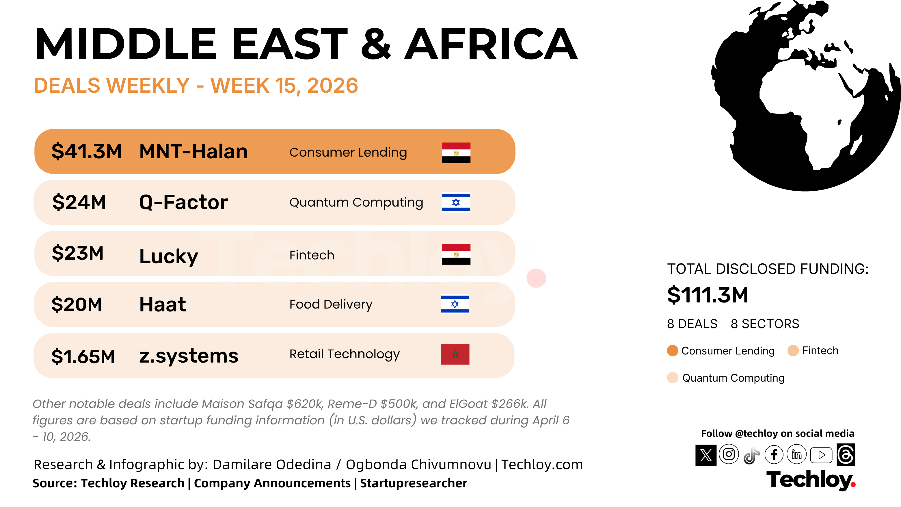 With $111.3 million in disclosed funding this week, investor attention across Africa and the Middle East stayed heavily concentrated in fintech, with Egypt’s consumer credit sector alone accounting for nearly $64 million. Beyond finance, the deal mix stretched from quantum computing in Israel to refrigeration-free biotech in Cairo and a luxury flash-sale platform in Riyadh. Five of the eight deals fell below the $2 million mark, showing that seed-stage founders across the region are still finding backers alongside the larger checks going to more established players.
