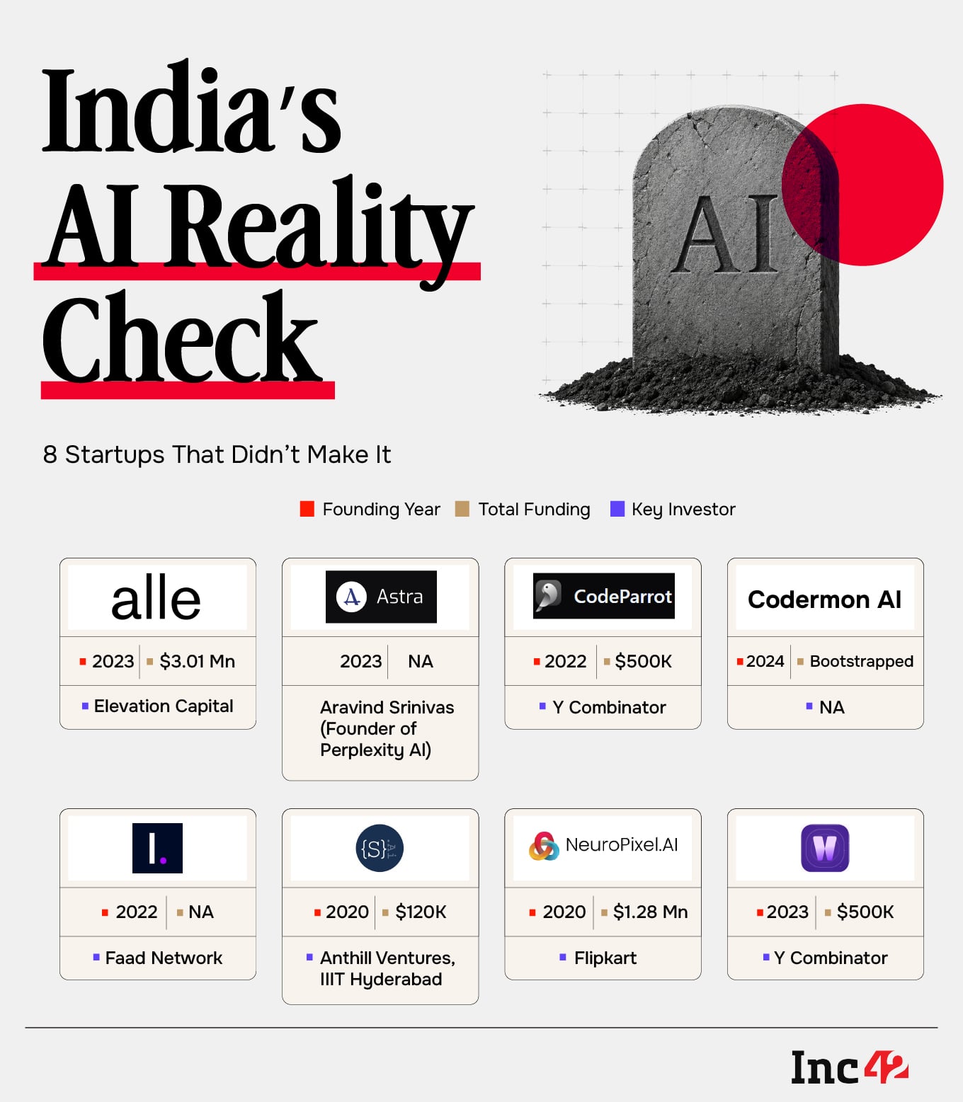 The most prominent closures include Builder.ai, a $1.5 Bn unicorn that collapsed following an alleged revenue inflation scandal. AI-powered fashion styling and shopping app Alle, NeuroPixel.AI and Subtl AI are other examples that were quick to board the AI bus but failed to cash in.